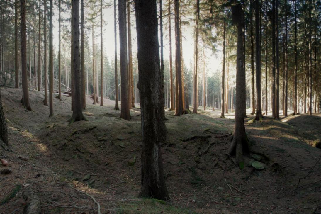- Pingen und Grubenhäuser sind auch heute noch im dichten Kiefernwald zu erkennen. (JPG; 3 MB)