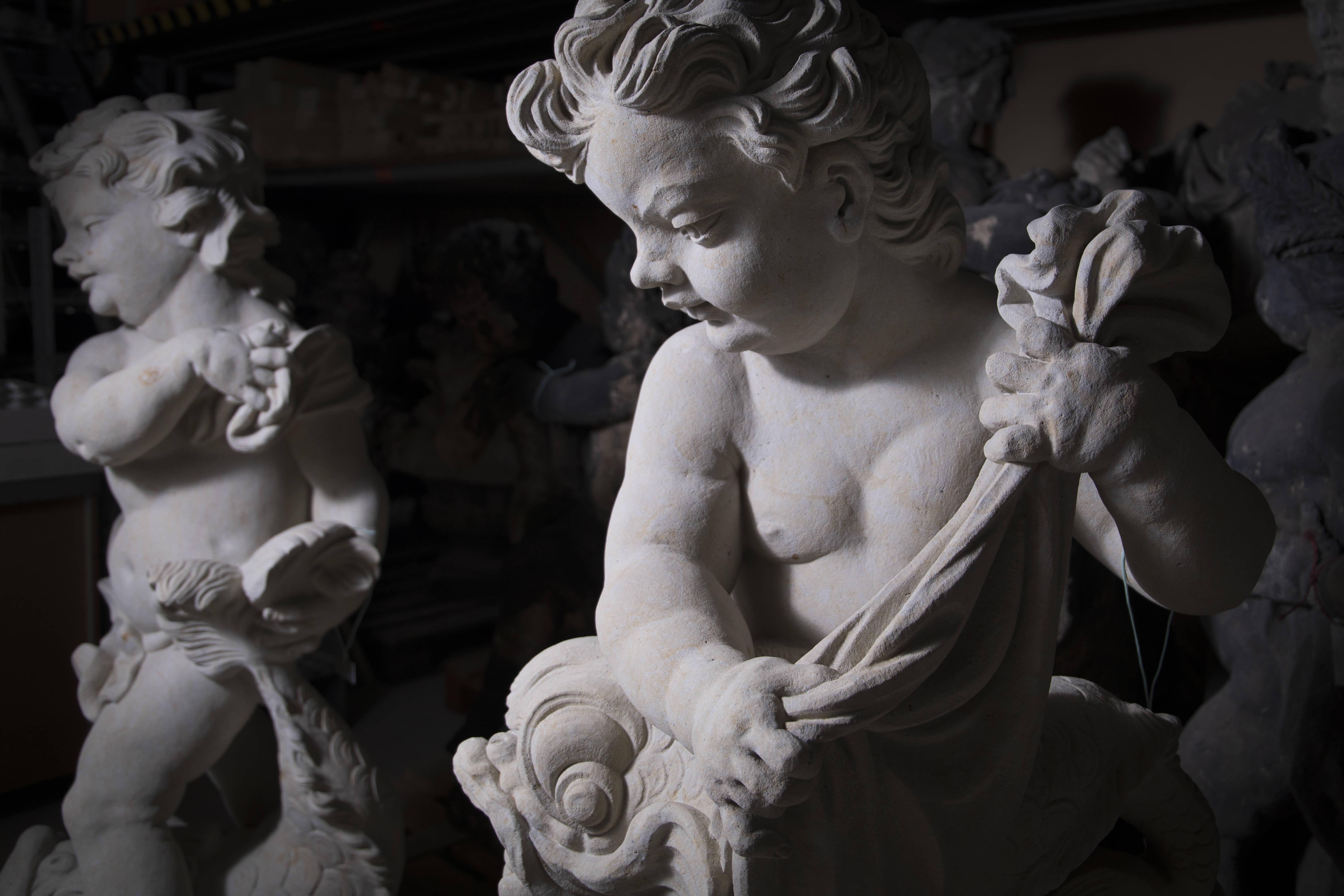 Zurzeit arbeitet die Zwingerbauhütte an der Bogengalerie L und dem Französischen Pavillon. Hier sind sehr anspruchsvolle restauratorische Maßnahmen an den Fassaden notwendig. So befindet sich der skulpturale Schmuck gerade in den Werkstätten und wird dort entsalzt, repariert und lasiert.