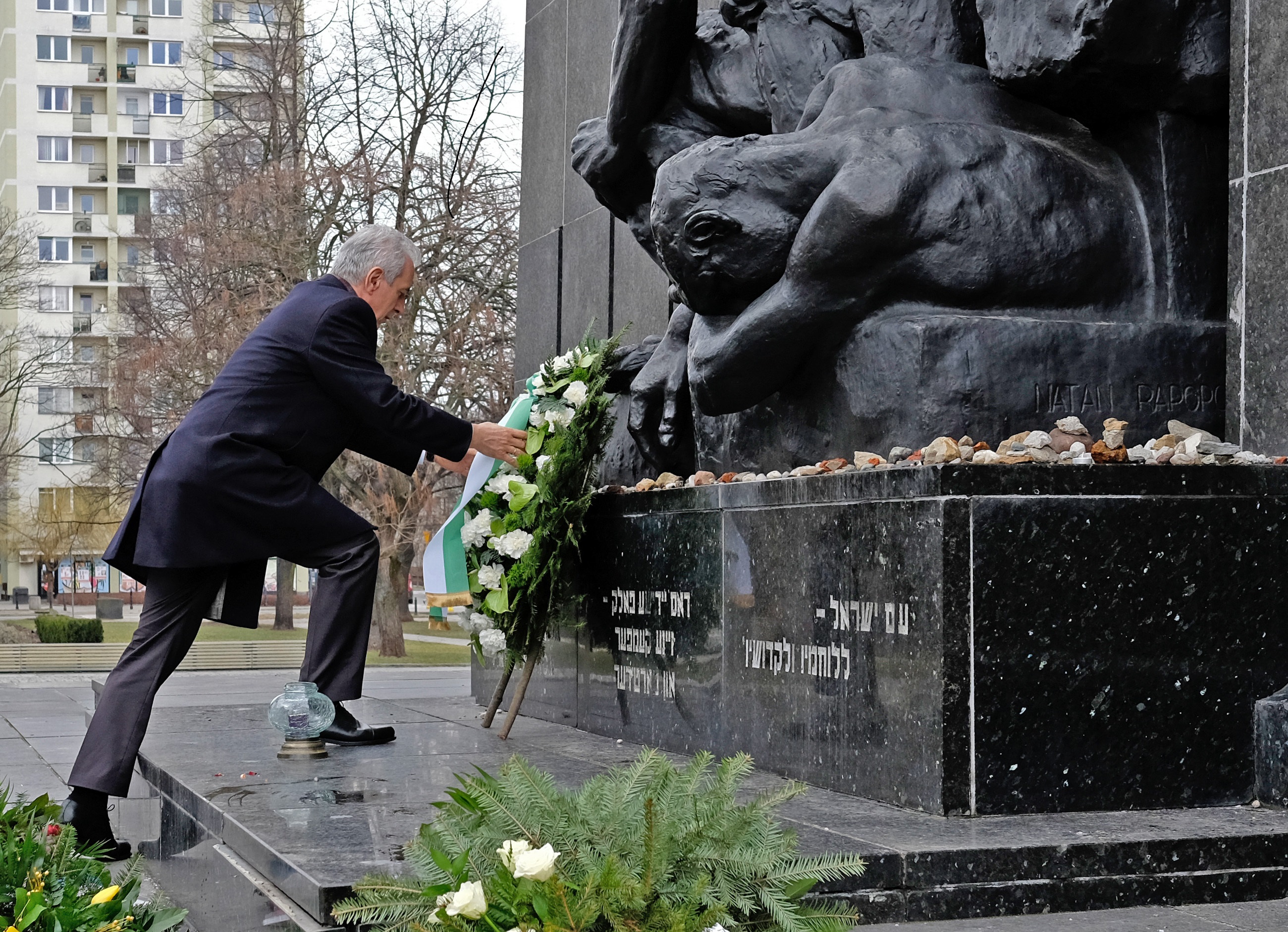 Kranzniederlegung am Denkmal der Helden des Warschauer Ghettos in der polnischen Hauptstadt